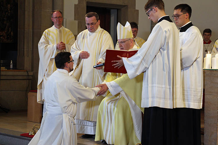 Nachdem unser Praktikant Michael Kreher fast ein Jahr lang in unserer Pfarrei den ersten Teil seines Pastoralpraktikums absolviert hat war es am Sonntag, den 13.09.20 endlich soweit. Ein halbes Jahr später als ursprünglich (vor Corona) geplant weihte Bischof Heinrich Timmerevers Michael Kreher gemeinsam mit Herrn Vinzent Piechazek in der Herz-Jesu-Kirche Dresden (Johannstadt) zum Diakon.