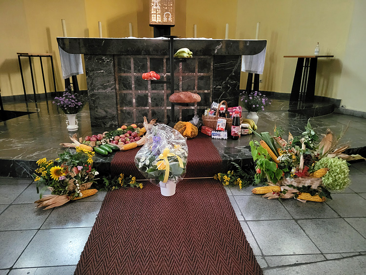 Zum Erntedank-Fest geschmückter Altar in Gröditz