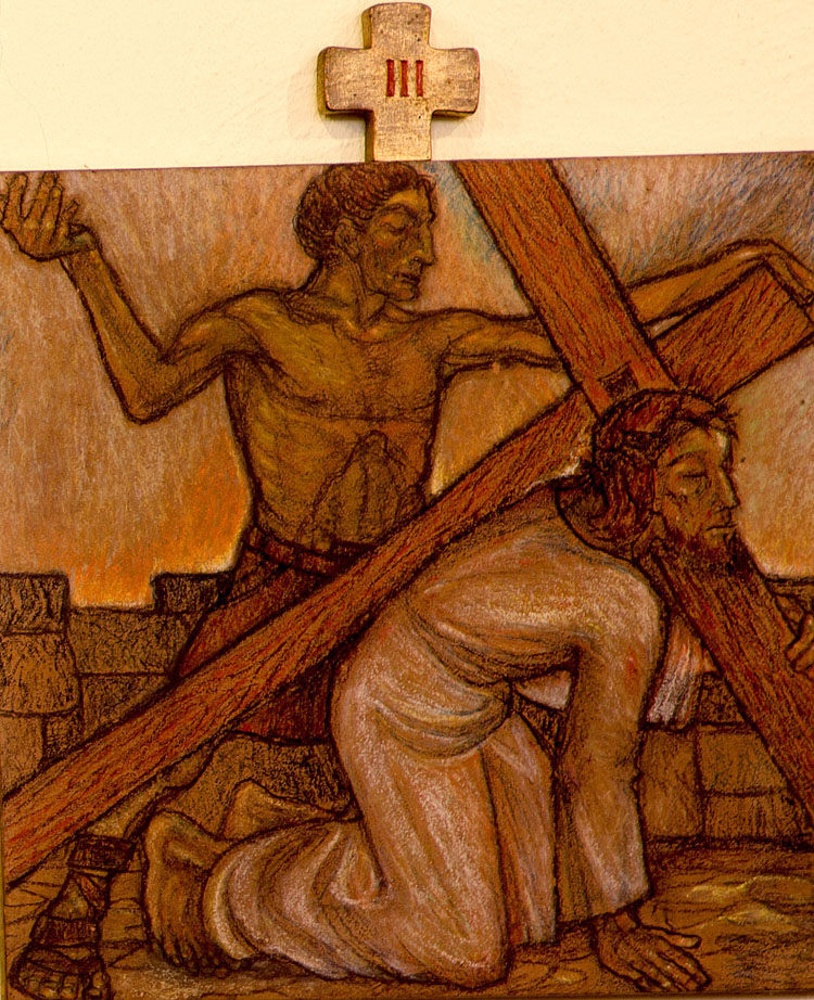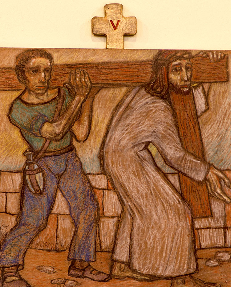 5. Station: Simon von Cyrene hilft Jesus das Kreuz tragen