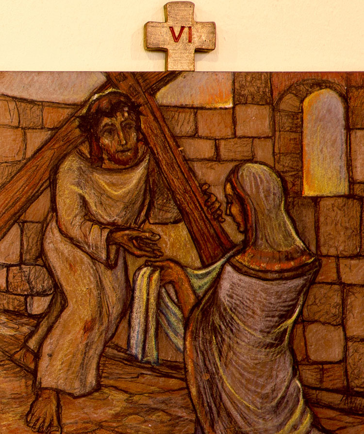 6. Station: Veronika reicht Jesus das Schweißtuch